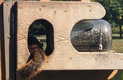 Squirrels are rodent mammals that feed mostly on nuts and seeds.